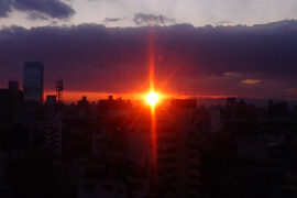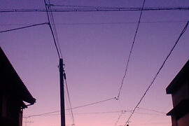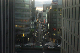 ビルとビルを繋ぐ通路。普通ならば見ることの出来ない位置から道路を見ることが出来る。眼下を行き交う車や人の流れに見とれてしまった、ある日の夕暮れどき。