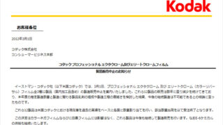 【Kodak】製造販売中止のお知らせ