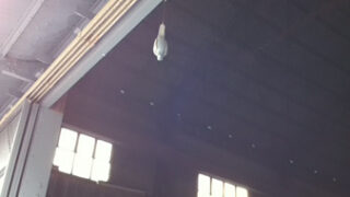 堀江の散策途中に発見。工場の入口に何かがぶらさがってる!ハトですね偽物ですけど。えーっと、これは見せしめ的なやつでしょうか?
