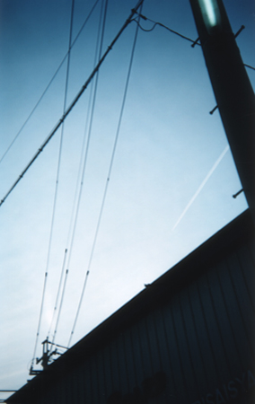(上の写真)夕方の空に飛行機雲があったのでシャッターを切りました。感度が400だからでしょうか、写っていて驚きました。