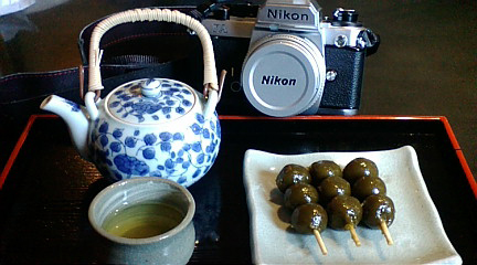 宇治神社近くのお店でお茶菓子と煎茶のセット。