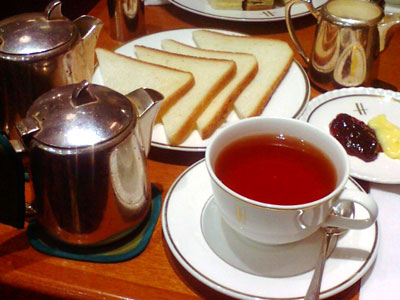 朝のセットの記録写真 mobilephonecamera-docomo Twitter Facebook はてブ Pocket LINE コピー 2023.06.122008.01.03 密かに気に入っているハロッズのモーニングプレートセット。 テーブルはとても狭いのに、やたらと出てくる食器類が多い感じ。紅茶には専用ミルクはもちろん、銀のポットで指し湯も必ずついてきます。そのうえ比較的上品で丁寧な接客(従業員の指導がしっかりしているのでしょう)。 数百円で少しだけセレブな気分になれます。あとはテーブルを少し広くしてくれくれたら。 撮影:F904i