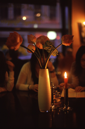 テーブル向かい側のグループがキャンドルでふんわり照らされて柔らかい雰囲気に。