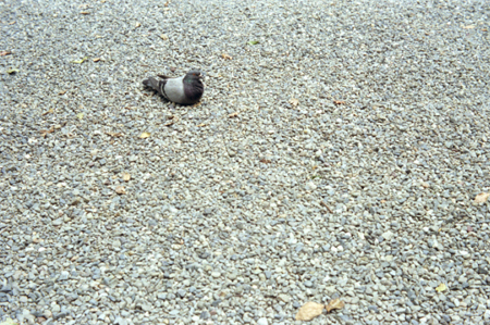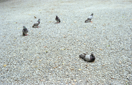 灼熱の砂利の上、こういうポーズのハトがたくさんいました。